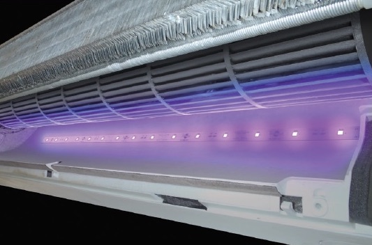 Mini UV LED is the first-of-its-kind UV light LED system for mini-splits and similar limited space applications. Like all A/C systems, mini-splits are prone to internal mold growth and microbial contamination, particularly on and near the blower wheel. The LED light strip in Mini UV LED is designed to sterilize surfaces while having no impact on plastic materials.